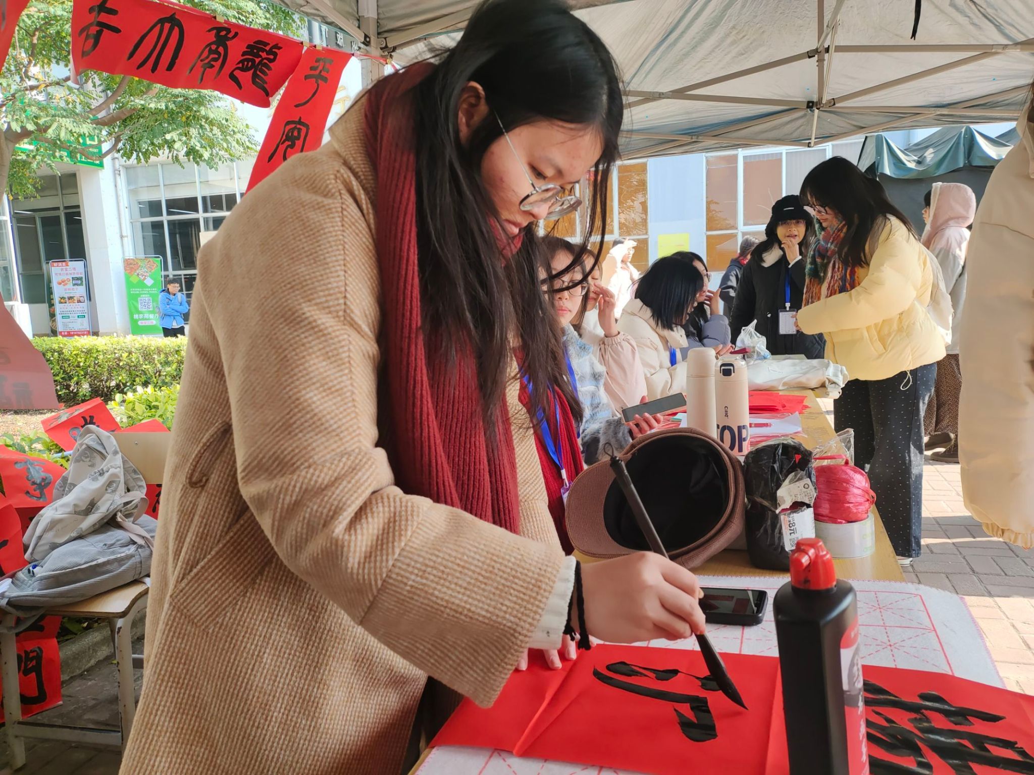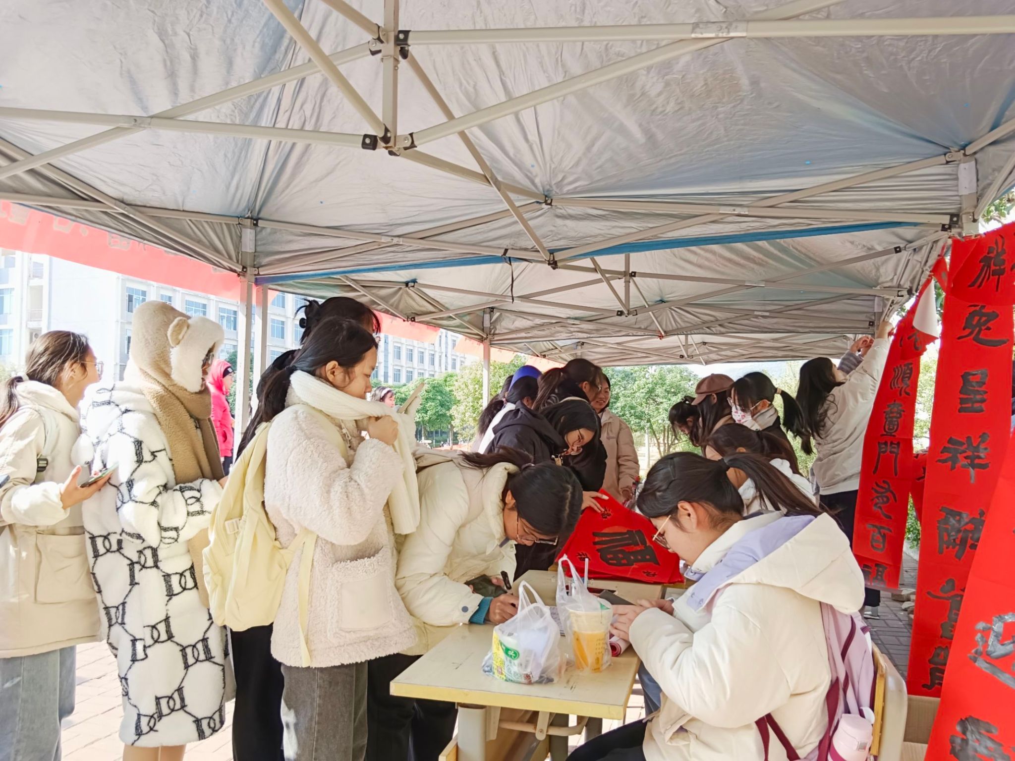 岁月添新,春满山河。为喜迎新年,初等教育学院于2023年12月22日在五合校区食堂门口举办“翰墨飘香迎新春,笔墨浓情送祝福”春联赠送活动。初等教育学院辅导员覃诗雅及初等教育学院三韵书社全体成员参与此次活动。