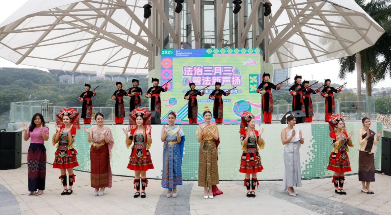 同学们依托“法治三月三”的舞台,以艺术之力为法治教育“添彩”,用民族舞姿诠释法治精神,让普法山歌“跳跃”,让法治故事“发声”,助推广西“法治三月三”民族法治宣传品牌以“潮”破圈、以“声”入心。